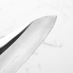 Japanese Ginsan steel, also known as Silver-3 or G3, is an underrated high-grade semi-stainless steel loved by many for being in the ‘goldilocks zone’ of knife steels. It holds a very respectable edge, but is effortless to sharpen. It is considered the semi-stainless version of White 2. It is the knife steel of choice for many home cooks and professional chefs alike.