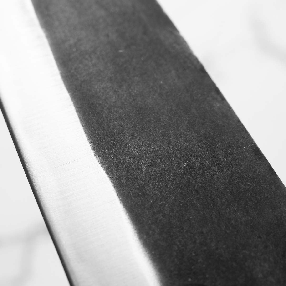 This knife is made from a high-carbon steel and as such, will require a little more care than a regular off-the-shelf knife. It must be dried shortly after use, as prolonged exposure to moisture can cause rust spots to appear. A very light coat of oil during storage also helps to prevent rust spots. A patina (colouration and seasoning of the steel) will occur with use.