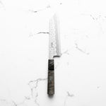 The Bunka knife, a versatile and traditional Japanese kitchen tool, features a distinctive, angular tip and a wide blade. It's designed for precision tasks like slicing, dicing, and chopping. Ideal for handling vegetables, meat, and fish, the Bunka is a multifunctional knife celebrated for its utility and unique aesthetic.