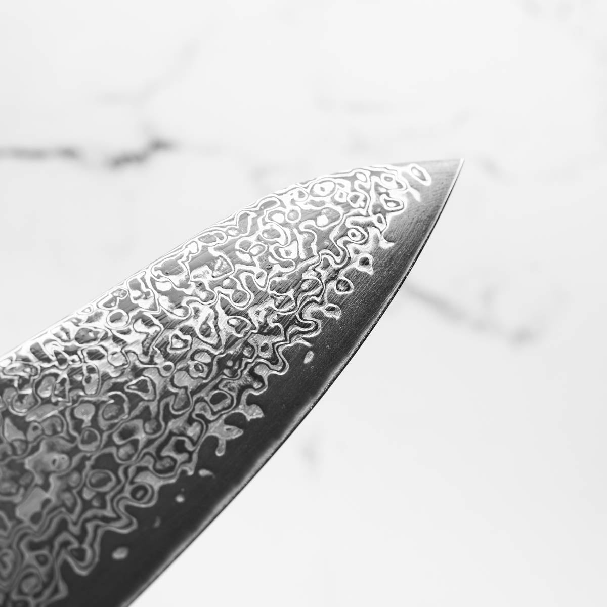 Japanese SLD steel is a semi-stainless steel crafted through advanced metallurgy. It is used often in Sanjo knives, has a non-chippy edge and is extremely tough. This high-carbon steel, enriched with chromium and molybdenum, offers excellent performance, but be mindful not to leave it wet for extended periods.