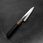 The Petty knife, a quintessential tool in Japanese cuisine, is a smaller utility knife used for precise, delicate tasks. Often considered a smaller sibling to the chef's knife, it excels in hand-held tasks like peeling, trimming, and intricate cutting. Its versatility makes it an essential for detailed culinary work.