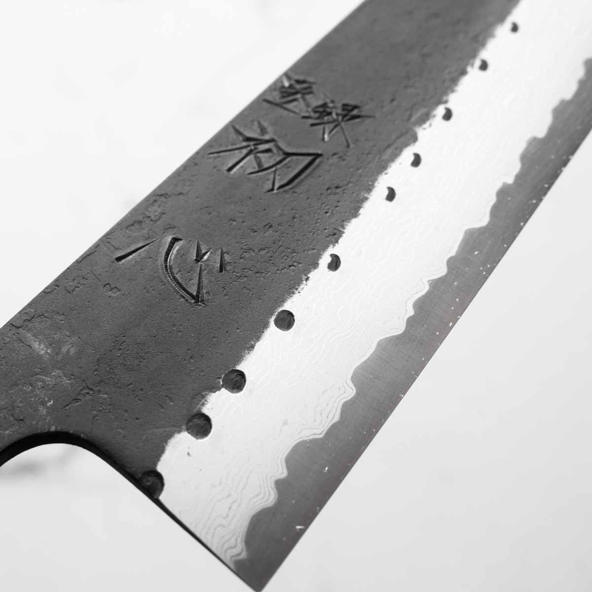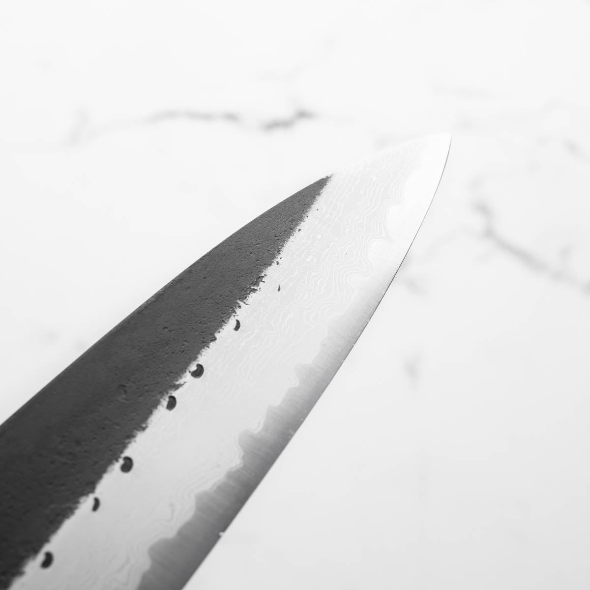 Hatsukokoro Shinkiro Blue Super Damascus Kurouchi Gyuto 210mm - Ebony & Blonde