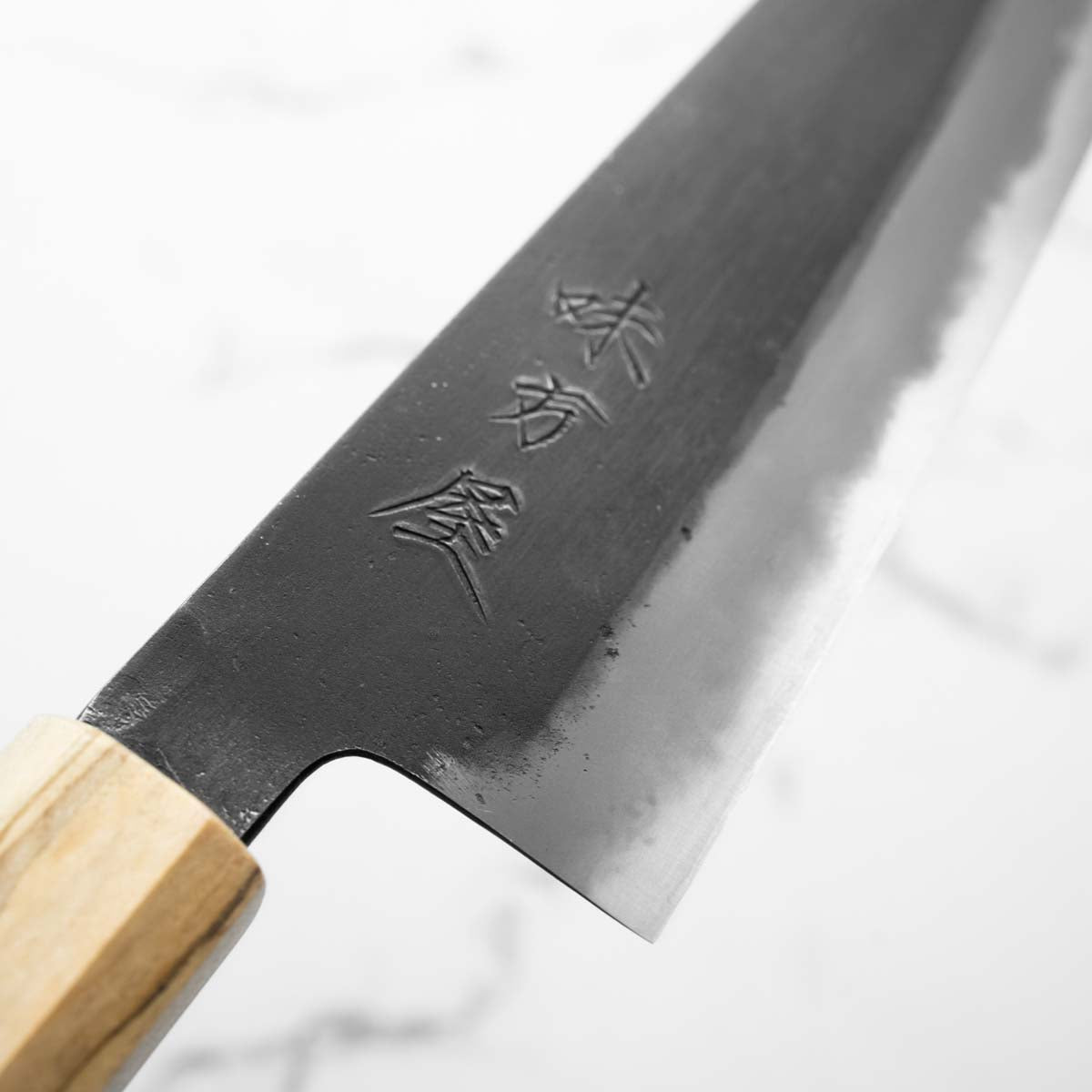 Japanese White Steel #2, a traditional high-carbon steel, is cherished for its purity and fine grain structure, enabling razor-sharp edges, at the cost of being reactive. It is one of the easiest steels to sharpen, but cannot be left wet for even short periods otherwise rust spots can occur. If you’re fastidious in your knife maintenance, this knife steel can be extremely rewarding to use.