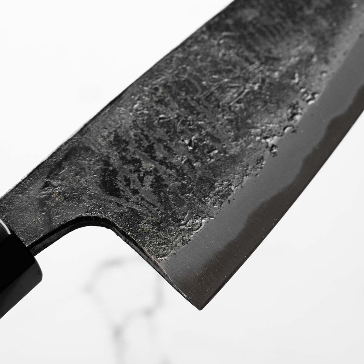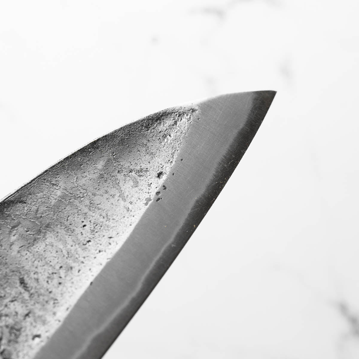 This knife is made from a high-carbon steel and as such, will require a little more care than a regular off-the-shelf knife. It must be dried shortly after use, as prolonged exposure to moisture can cause rust spots to appear. A very light coat of oil during storage also helps to prevent rust spots. A patina (colouration and seasoning of the steel) will occur with use.
