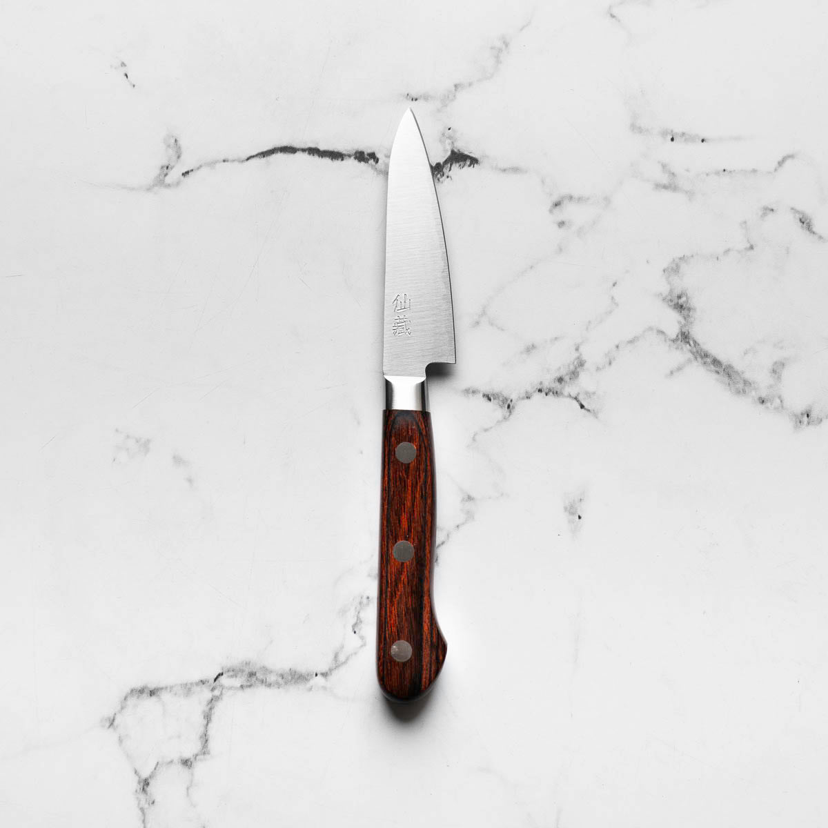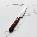 A paring knife, sometimes also known as a petty knife, is a small yet versatile tool, ideal for precise culinary tasks. Traditionally used for peeling, shaping, and delicate cutting, its compact size and sharp edge allow for meticulous control, making it essential for detailed work in fruits, vegetables, and garnishes.