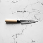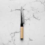 The Petty knife, a quintessential tool in Japanese cuisine, is a smaller utility knife used for precise, delicate tasks. Often considered a smaller sibling to the chef's knife, it excels in hand-held tasks like peeling, trimming, and intricate cutting. Its versatility makes it an essential for detailed culinary work.