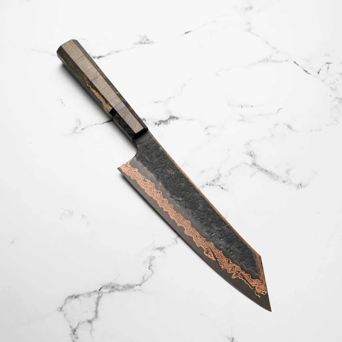 Hatsukokoro Yorokobi Kurouchi SLD Damascus Tsuchime Kiritsuke Gyuto 210 - Dark Maple