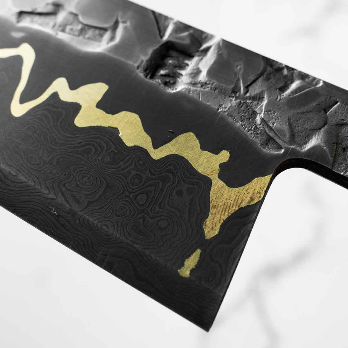 House Made Carbon Steel Damascus (1.2419) with 80crv2 Cladding, Brass Shim