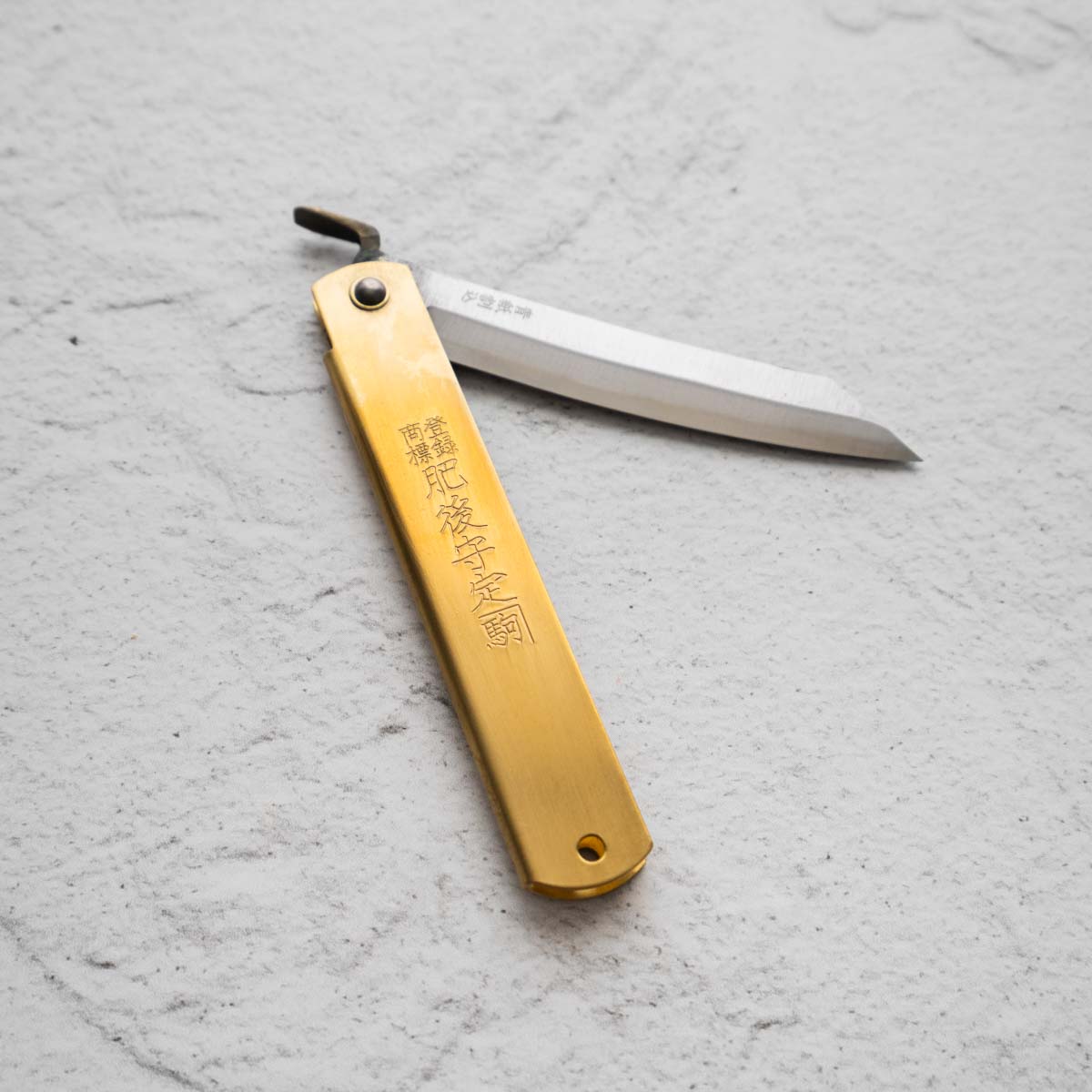 He named it “Higonokami Knife” because many of his customers were in Kumamoto area (formally Higo country), which turned out to dramatically increase his sales. The blades have gradually changed their shapes. Unlike single-edged knives, the double-edged blades (V-shaped cross section) were in those days considered common. The earlier blades had a sharper tip (shape of a bamboo leaf), but now they have square shapes. The sheaths had a vertically folding style and a cross folding style, now the vertical one has to be custom made.