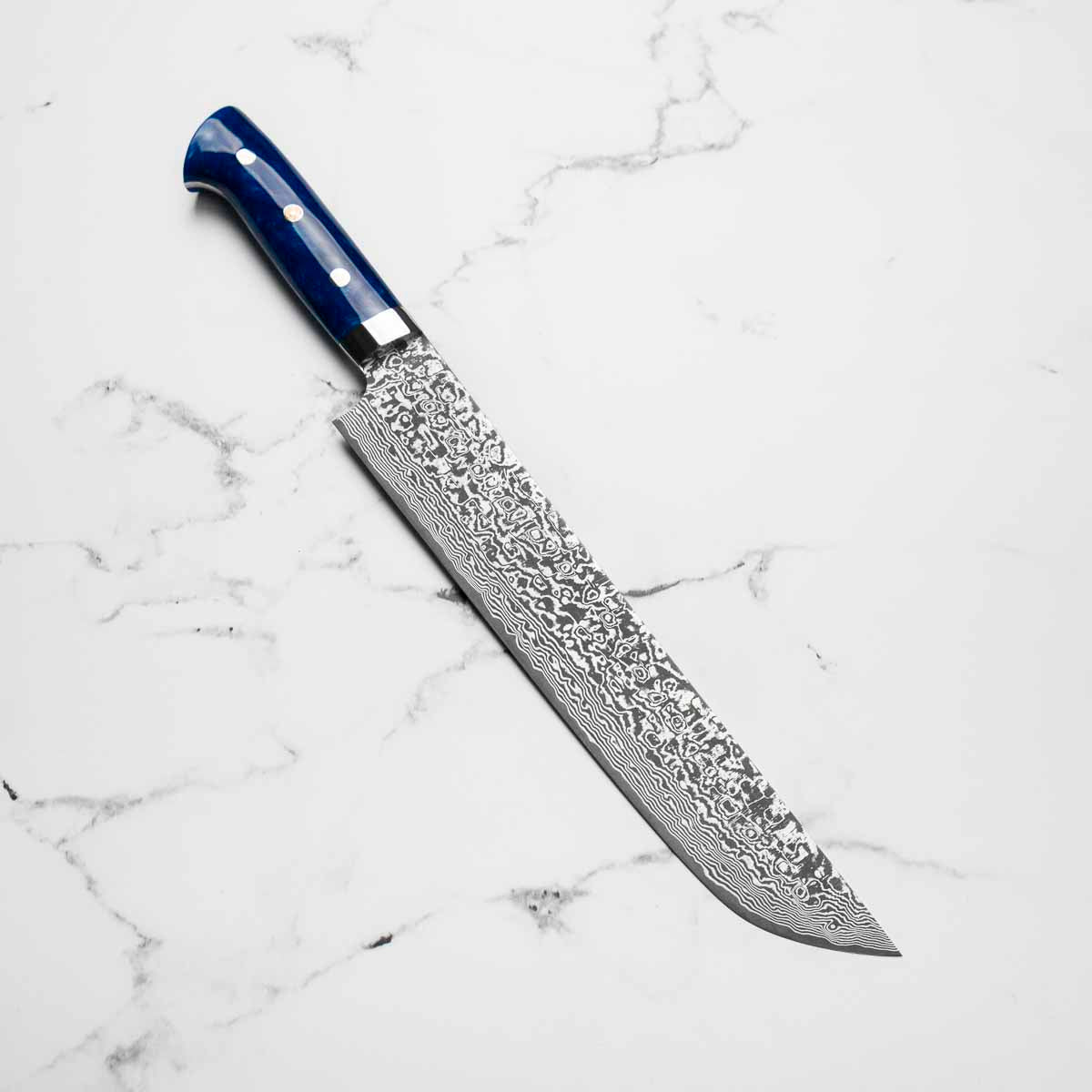 Takeshi Saji R2/SG2 Damascus Sakimaru Sujihiki 240mm Blue Acrylic