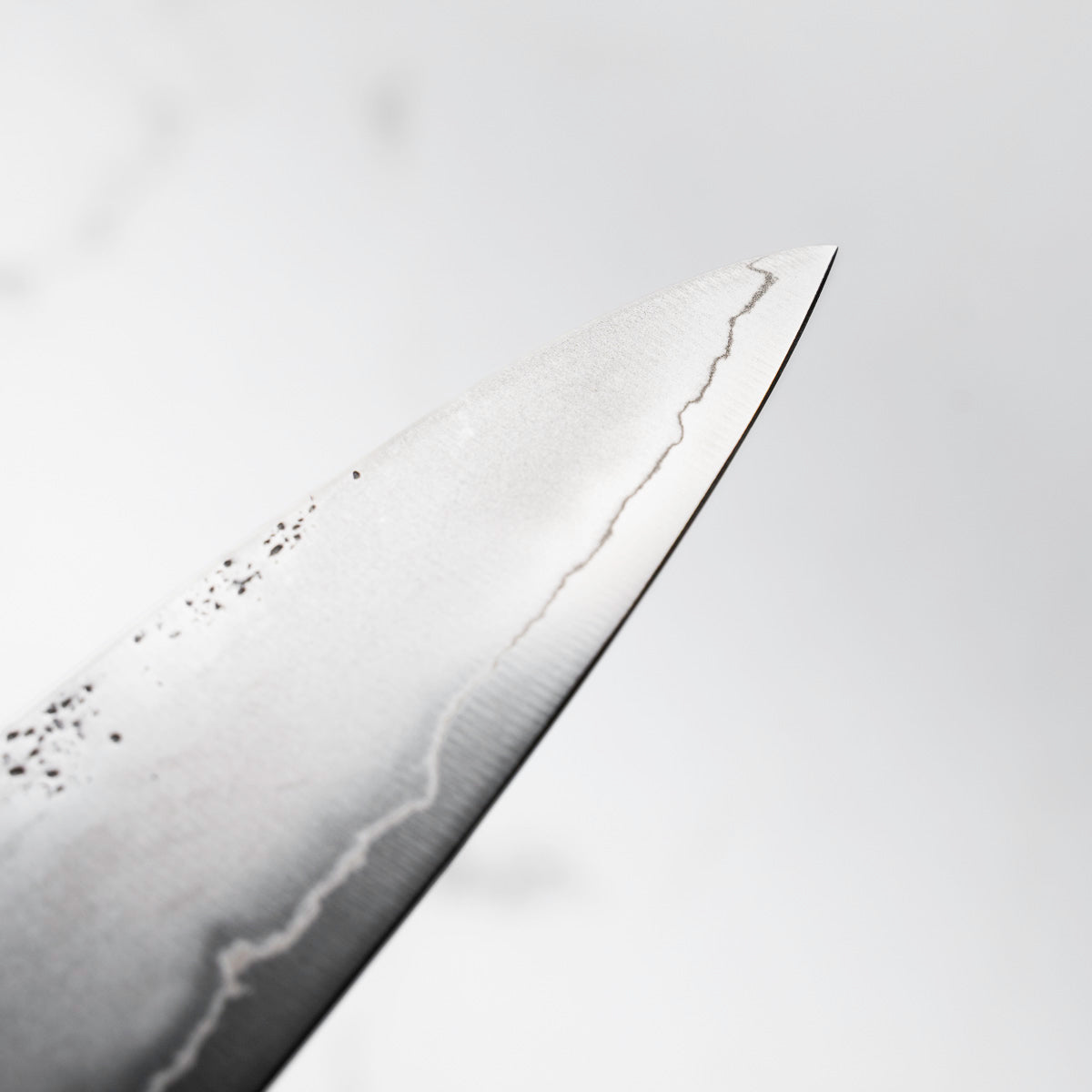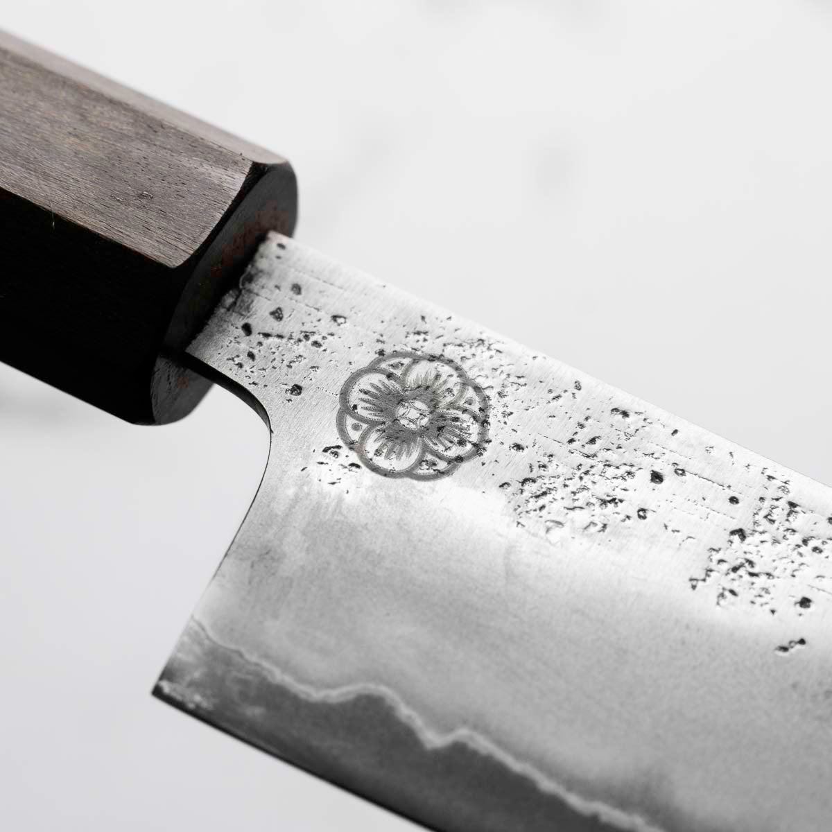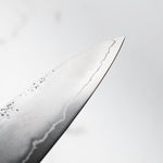 Japanese Ginsan steel, also known as Silver-3 or G3, is an underrated high-grade semi-stainless steel loved by many for being in the ‘goldilocks zone’ of knife steels. It holds a very respectable edge, but is effortless to sharpen. It is considered the semi-stainless version of White 2. It is the knife steel of choice for many home cooks and professional chefs alike.