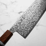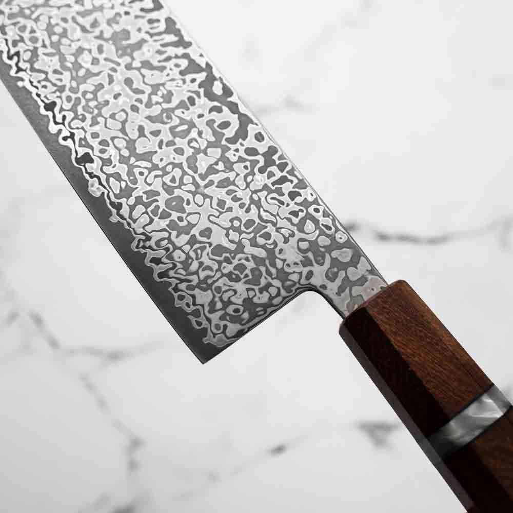 Japanese SLD steel is a semi-stainless steel crafted through advanced metallurgy. It is used often in Sanjo knives, has a non-chippy edge and is extremely tough. This high-carbon steel, enriched with chromium and molybdenum, offers excellent performance, but be mindful not to leave it wet for extended periods.