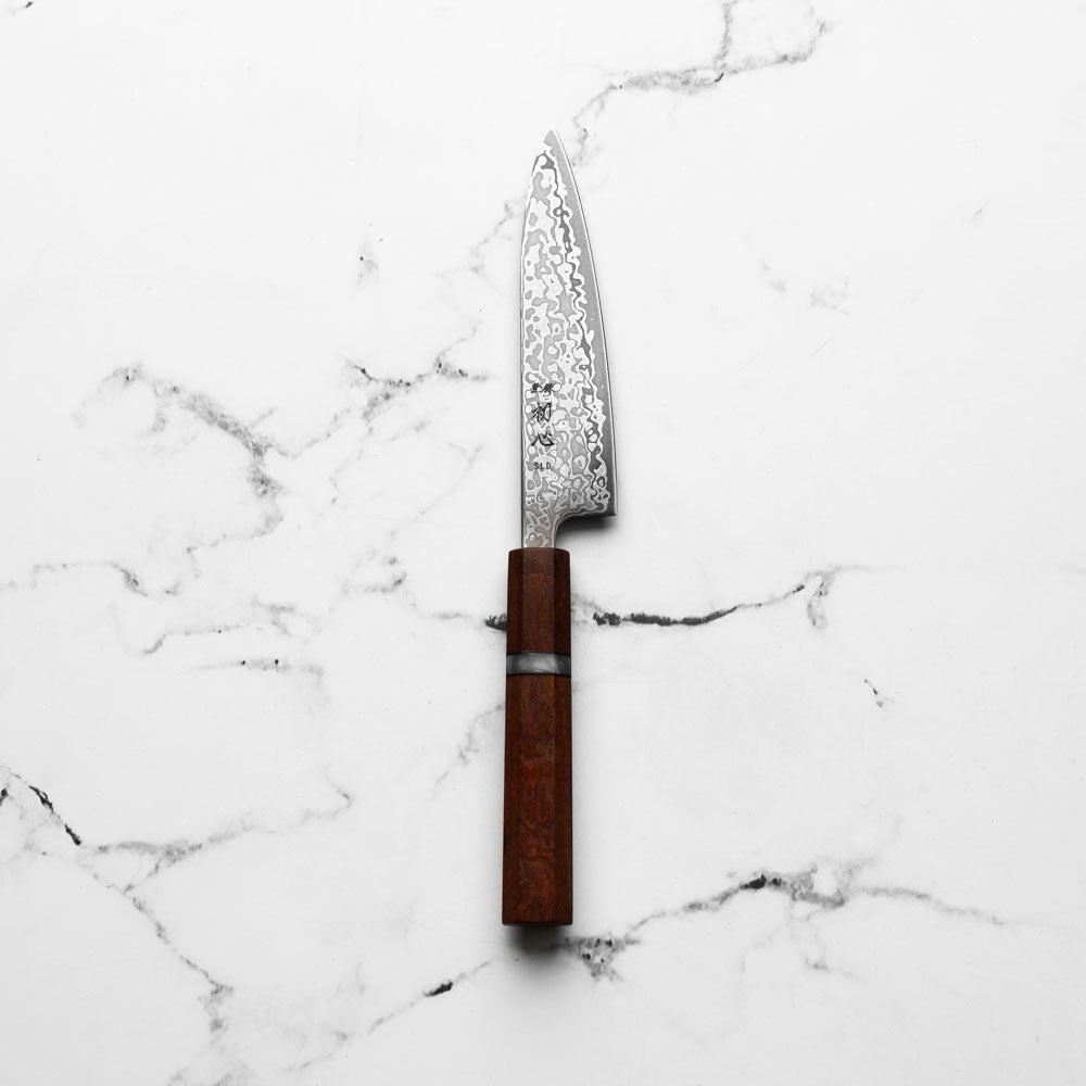 Hatsukokoro Hikari SLD Damascus Kurozome Petty 130mm - Sandalwood
