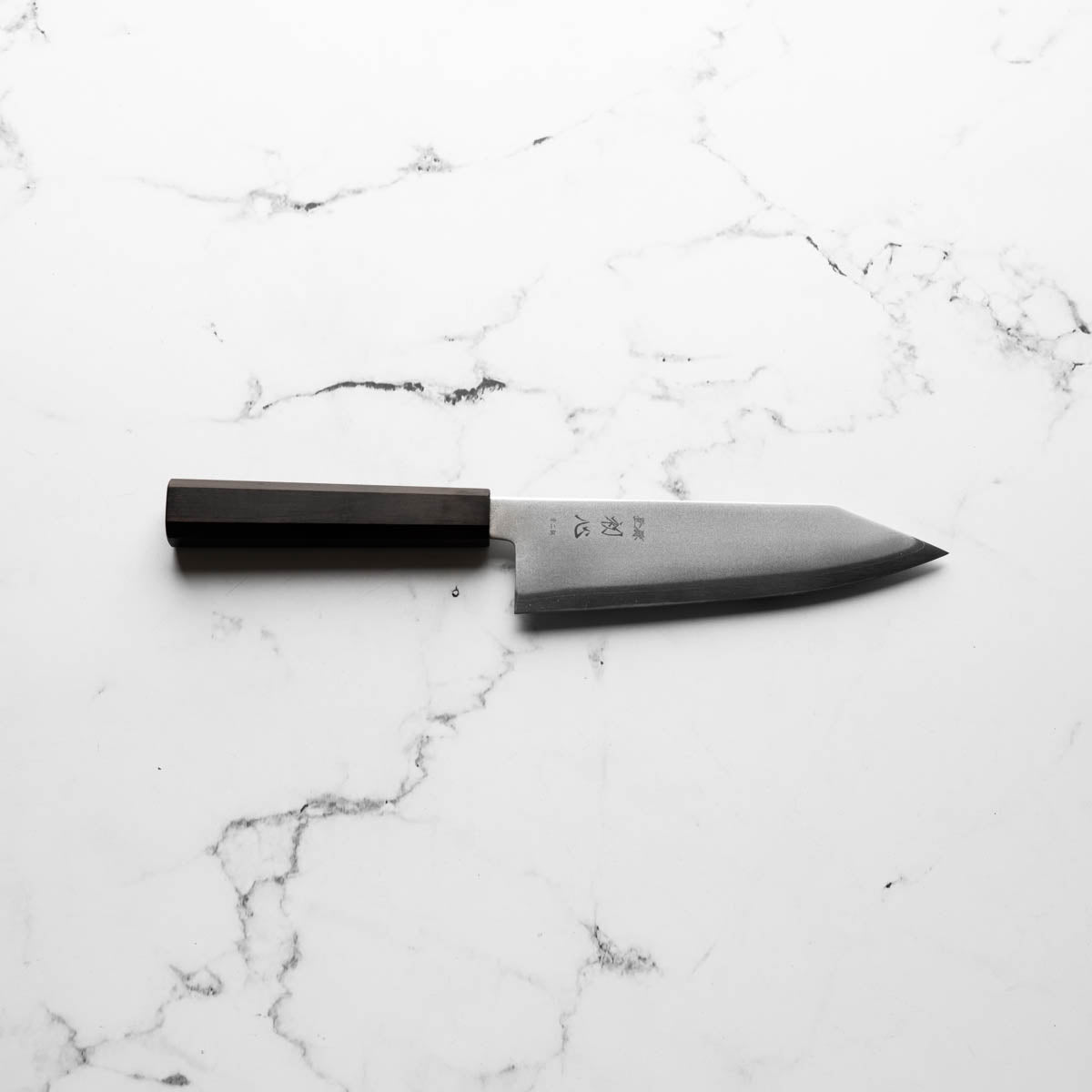 The Bunka knife, a versatile and traditional Japanese kitchen tool, features a distinctive, angular tip and a wide blade. It's designed for precision tasks like slicing, dicing, and chopping. Ideal for handling vegetables, meat, and fish, the Bunka is a multifunctional knife celebrated for its utility and unique aesthetic.
