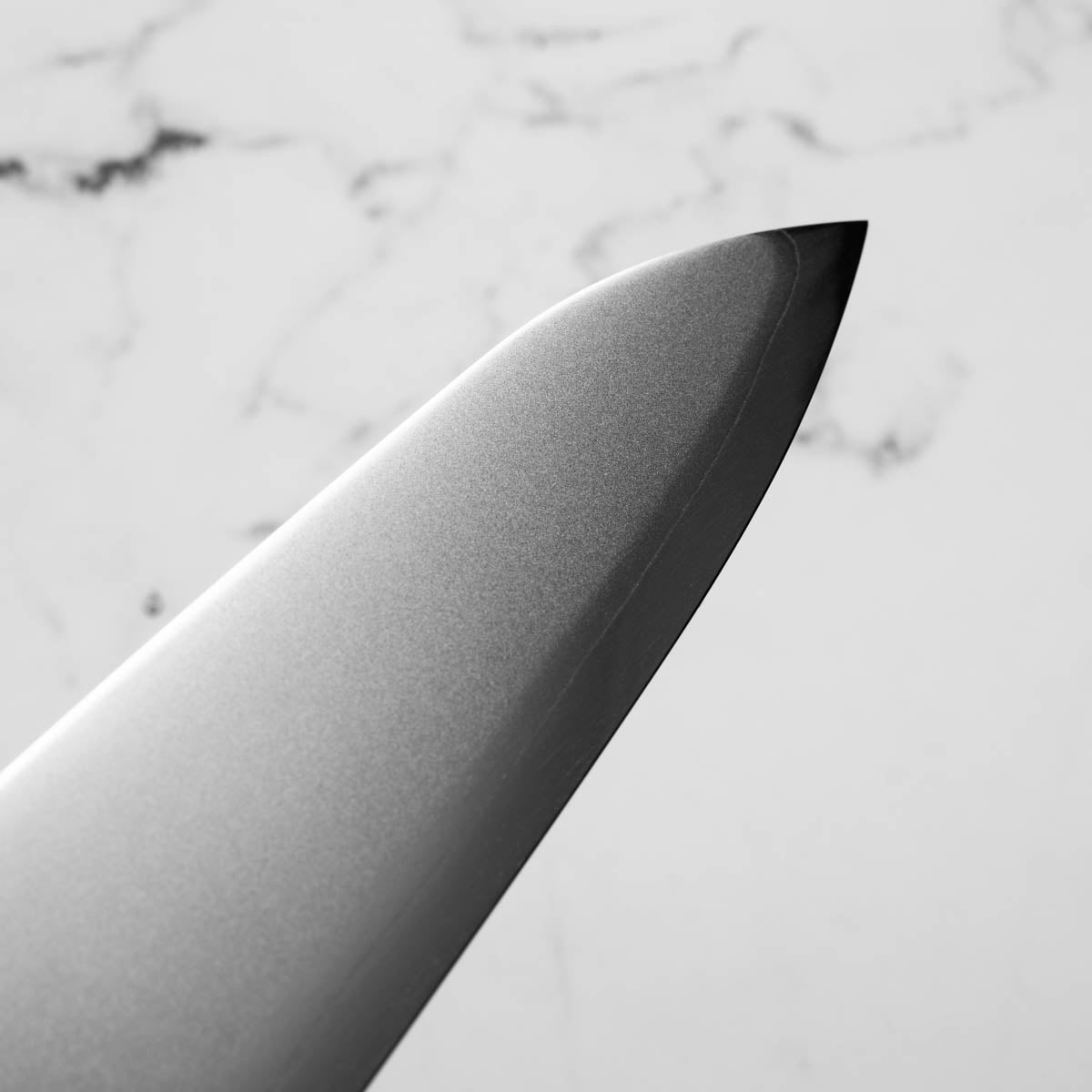 This knife is made from a high-carbon steel and as such, will require a little more care than a regular off-the-shelf knife. It must be dried shortly after use, as prolonged exposure to moisture can cause rust spots to appear. A very light coat of oil during storage also helps to prevent rust spots. A patina (colouration and seasoning of the steel) will occur with use.