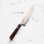 The Gyuto is the do-it-all, general purpose chef's knife. If you are looking for an all-rounder that can handle daily veg and protein prep and portioning, this is the one! A 210mm edge length is the most common, but try a 240mm if you prefer larger knives.