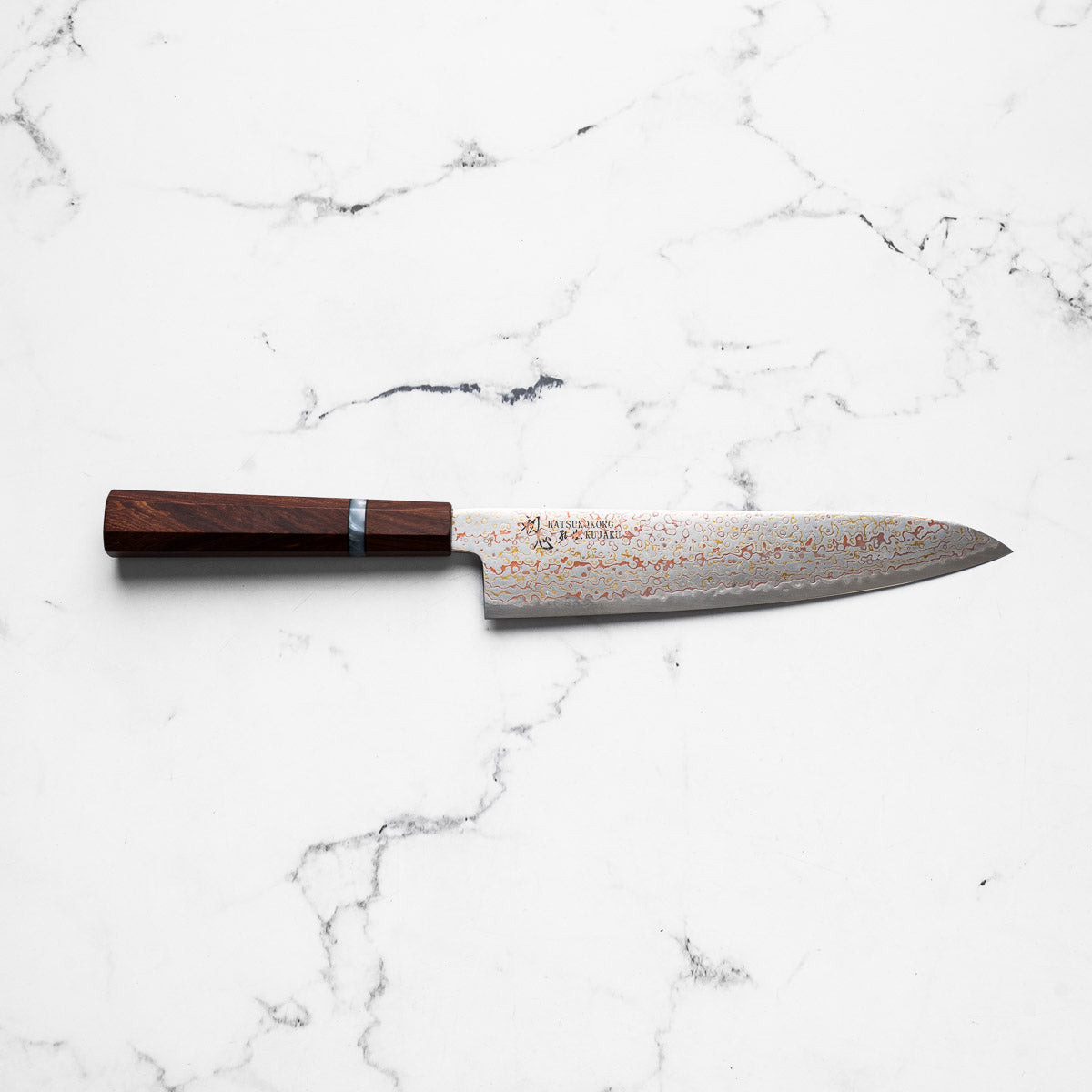 Hatsukokoro Kujaku V-Toku 2 Rainbow Damascus Gyuto 240mm - Sandalwood