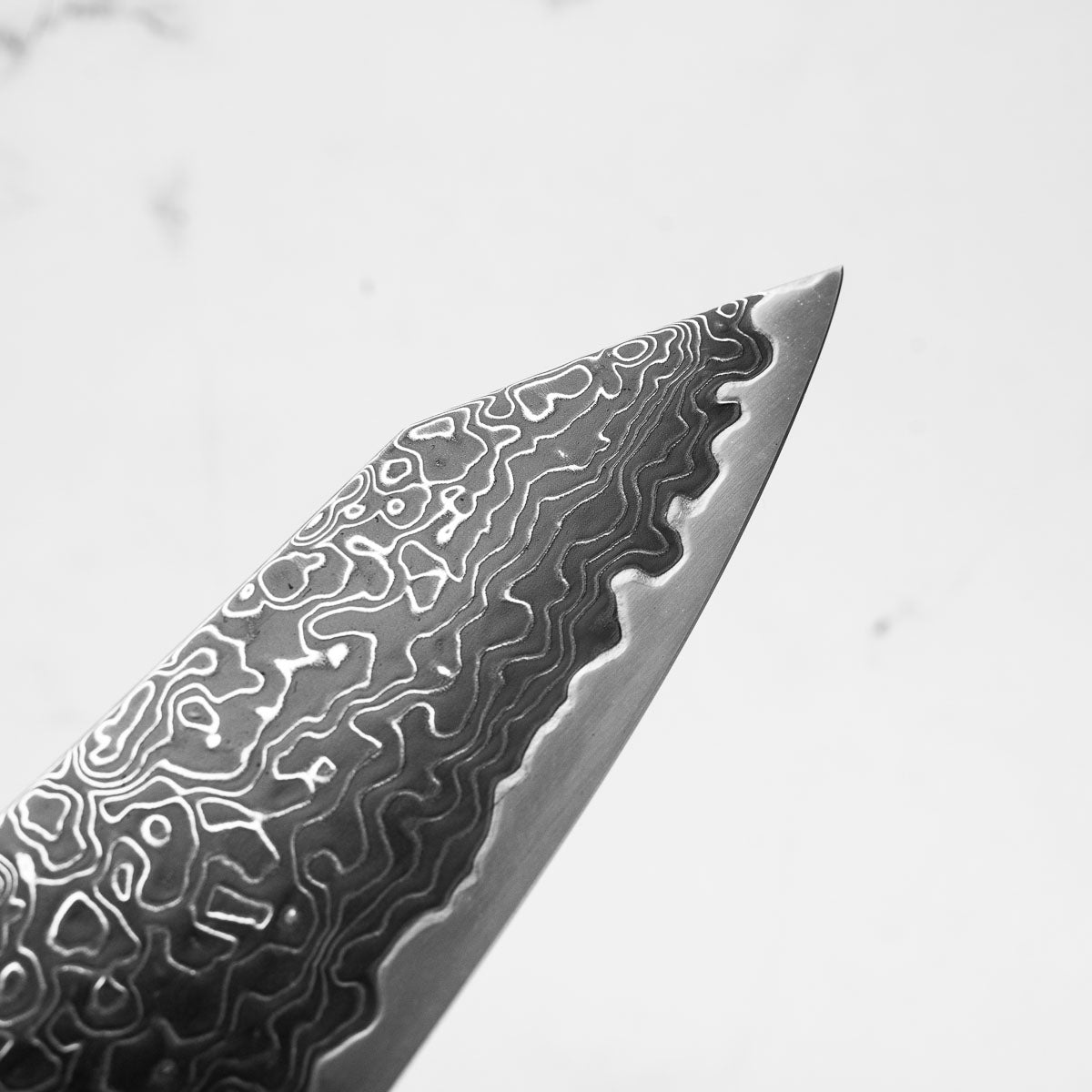 Japanese SG2, also known as R2 steel, is a high-end, powdered metallurgy stainless steel and one of the finest knife-making steels available in Japan. It is a favourite of many for its exceptional hardness and edge retention. Its fine, uniform grain structure enables razor-sharp edges, all the while holding an edge for much longer than Carbon steel knives, without needing to be concerned about rust appearing.