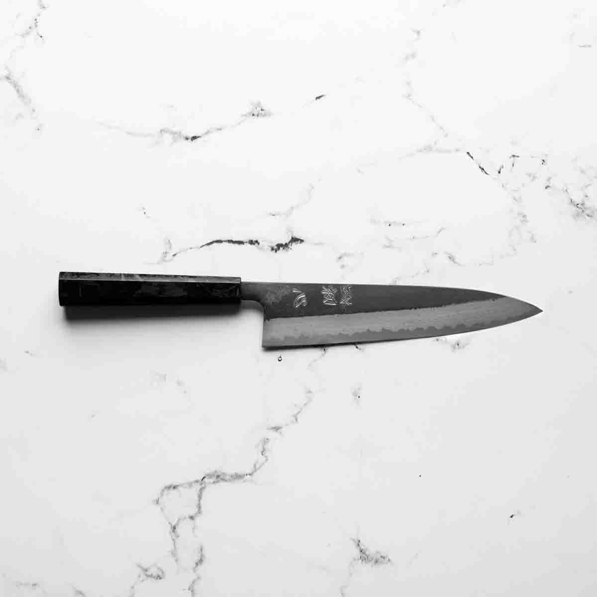 Hatsukokoro Shinkiro Blue Super Damascus Kurouchi Gyuto 210mm - Dark Carbon Fibre