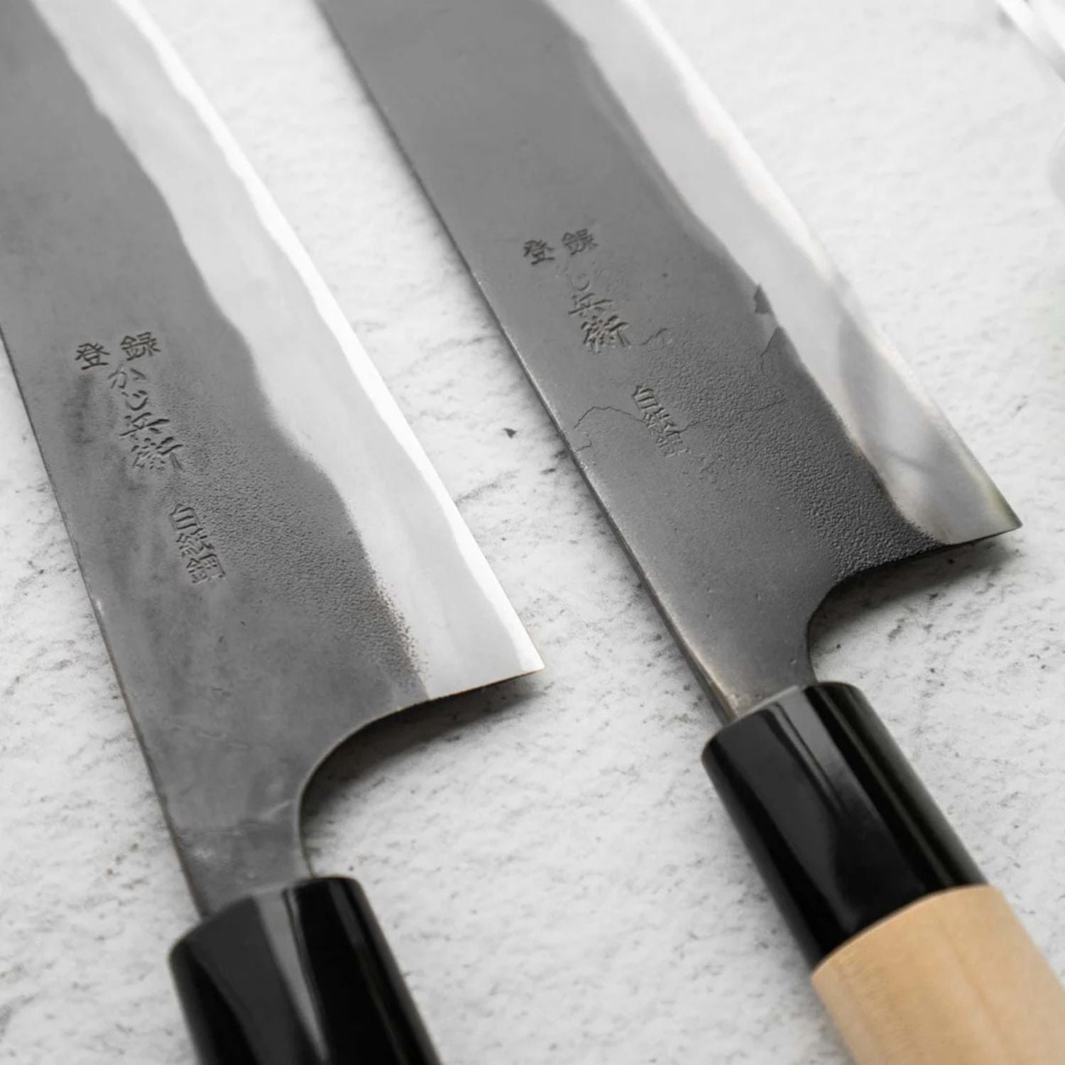 Kajibee knives are hand-forged by master blacksmith Kunio Ishikawa and his son. They are located in a quaint, traditional factory in the historic knife making city of Sanjo, Japan. Master Ishikawa prefers to only use traditional Japanese steel such as White, and Blue Paper steels from Hitachi Yasuki Steel. All Kajibee knives are hand-forged in a traditional wood-fired oven and then hand polished. This technique has been passed down from father to son for many hundreds of years.
