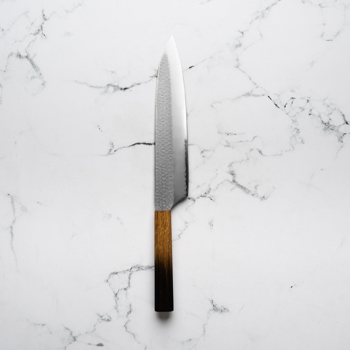 The Gyuto is the do-it-all, general purpose chef's knife. If you are looking for an all-rounder that can handle daily veg and protein prep and portioning, this is the one! A 210mm edge length is the most common, but try a 240mm if you prefer larger knives.