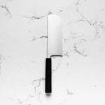 The Nakiri knife, revered in Japanese culinary traditions, is engineered for exceptional vegetable cutting. Featuring a distinct, straight-edged, and rectangular blade, it excels in creating uniform, precise cuts and aesthetic presentation. Its technical design ensures efficiency and precision, making it a valuable tool for both professional chefs and home cooks.