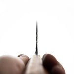 This knife is made from a high-carbon steel and as such, will require a little more care than a regular off-the-shelf knife. It must be dried shortly after use, as prolonged exposure to moisture can cause rust spots to appear. A very light coat of oil during storage also helps to prevent rust spots. A patina (colouration and seasoning of the steel) will occur with use.