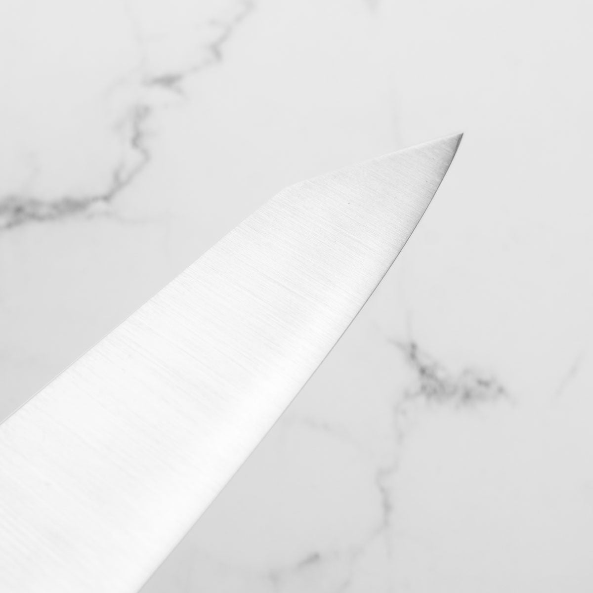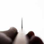 Japanese White Steel #2, a traditional high-carbon steel, is cherished for its purity and fine grain structure, enabling razor-sharp edges, at the cost of being reactive. It is one of the easiest steels to sharpen, but cannot be left wet for even short periods otherwise rust spots can occur. If you’re fastidious in your knife maintenance, this knife steel can be extremely rewarding to use.