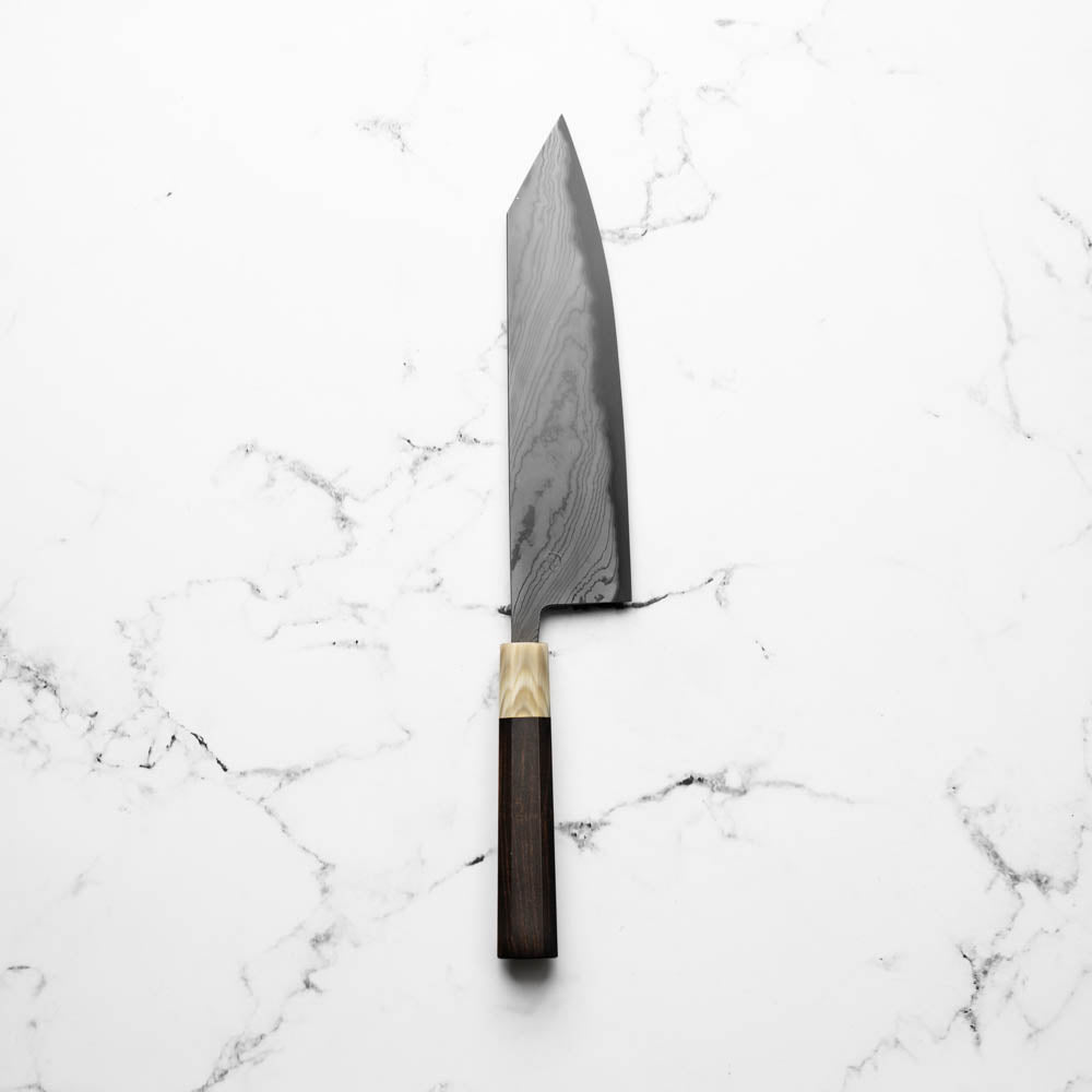 Miyazaki Kajiya Blue 2 Black Damascus Kiritsuke 240mm