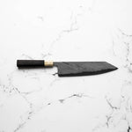 The Kiritsuke knife, a symbol of expertise in Japanese cuisine, is traditionally used by executive chefs. This multi-purpose knife combines features of a slicer and a vegetable knife, with its angled tip and long blade. It excels in precise slicing, chopping, and julienning, making it a prestigious and versatile tool.