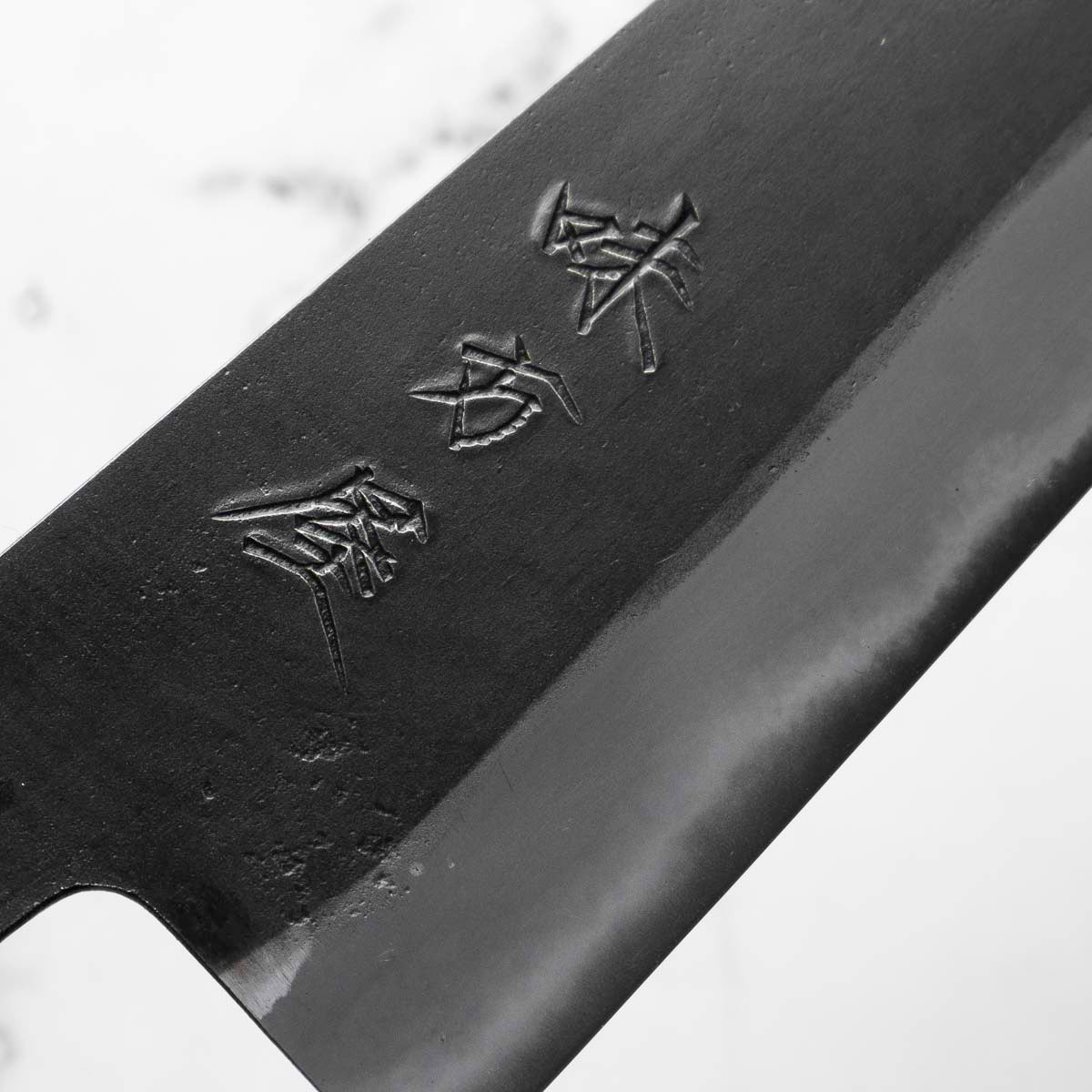 Japanese White Steel #2, a traditional high-carbon steel, is cherished for its purity and fine grain structure, enabling razor-sharp edges, at the cost of being reactive. It is one of the easiest steels to sharpen, but cannot be left wet for even short periods otherwise rust spots can occur. If you’re fastidious in your knife maintenance, this knife steel can be extremely rewarding to use.