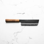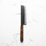 The Nakiri knife, revered in Japanese culinary traditions, is engineered for exceptional vegetable cutting. Featuring a distinct, straight-edged, and rectangular blade, it excels in creating uniform, precise cuts and aesthetic presentation. Its technical design ensures efficiency and precision, making it a valuable tool for both professional chefs and home cooks.