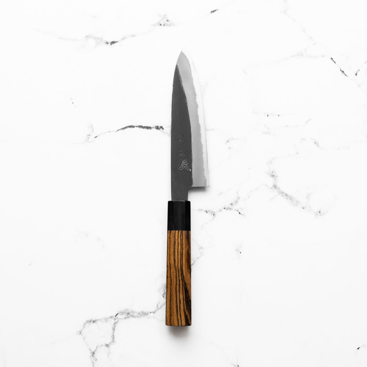 The Petty knife, a quintessential tool in Japanese cuisine, is a smaller utility knife used for precise, delicate tasks. Often considered a smaller sibling to the chef's knife, it excels in hand-held tasks like peeling, trimming, and intricate cutting. Its versatility makes it an essential for detailed culinary work.