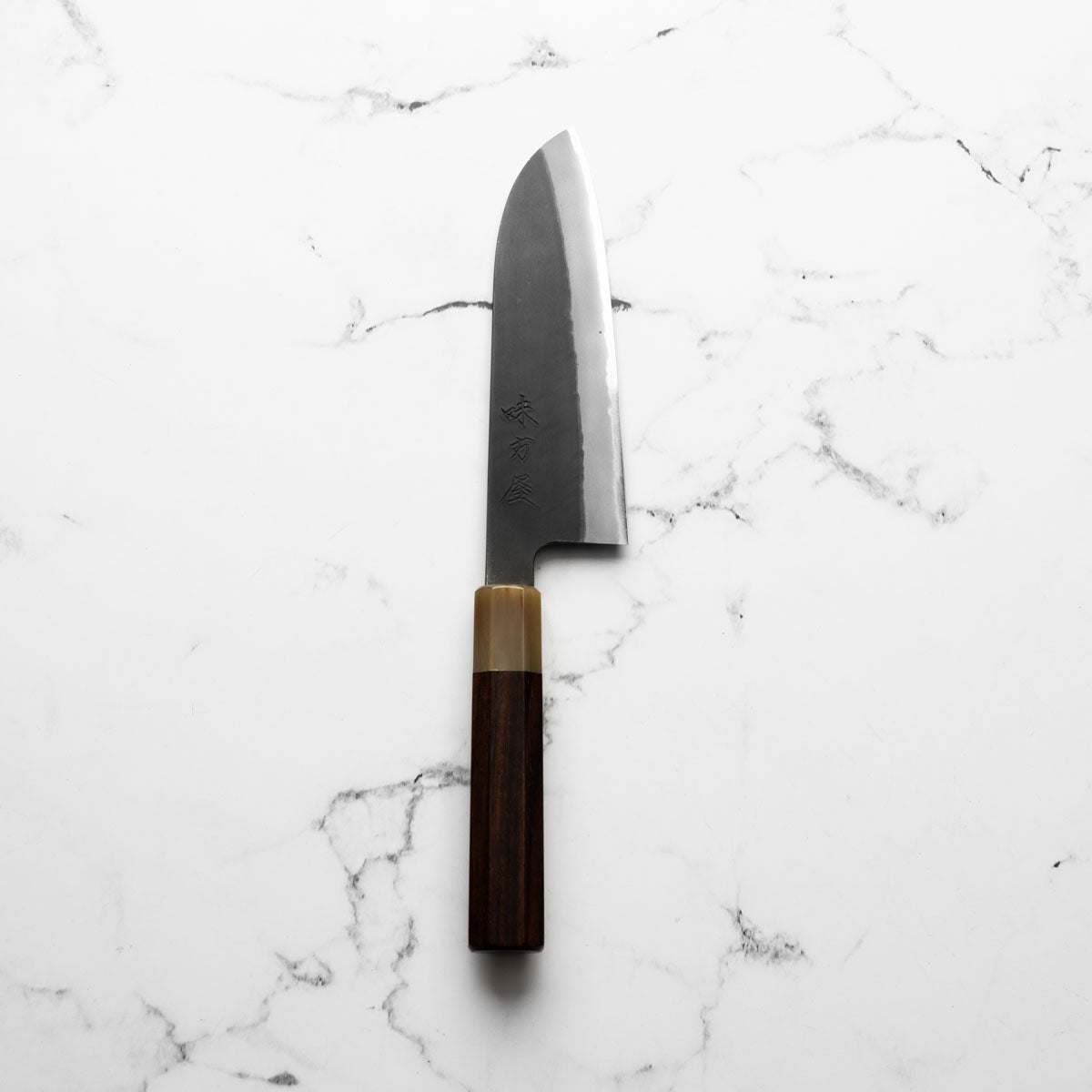 Mutsumi Hinoura Ajikataya White 2 Santoku 165mm - Rosewood & Blonde