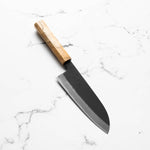 The Santoku knife, a classic in Japanese kitchens, translates to "three virtues," symbolizing its proficiency in slicing, dicing, and mincing. With a shorter, versatile blade and a balanced design, it's ideal for a range of tasks, from cutting meat to chopping vegetables, making it a beloved all-purpose tool.