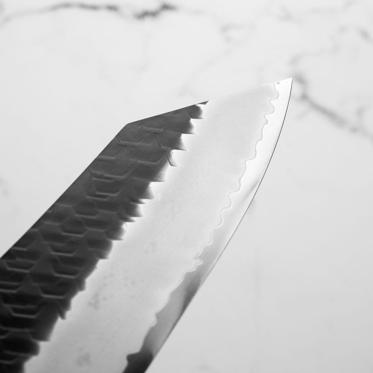 Nigara Hamono are truly some of the most experienced knifemakers in Japan. Now on their 8th generation of blacksmiths, they are masters at stainless damascus forging and heat treatment. The Anmon Damascus we have available have a matte finish and are polished underneath, resulting in a brilliant visual contrast.