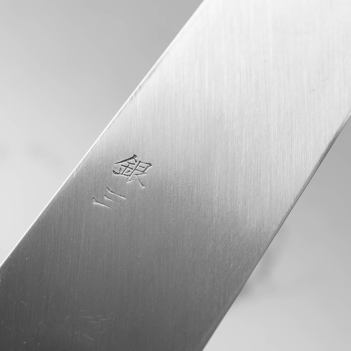 Japanese Ginsan steel, also known as Silver-3 or G3, is an underrated high-grade semi-stainless steel loved by many for being in the ‘goldilocks zone’ of knife steels. It holds a very respectable edge, but is effortless to sharpen. It is considered the semi-stainless version of White 2. It is the knife steel of choice for many home cooks and professional chefs alike.