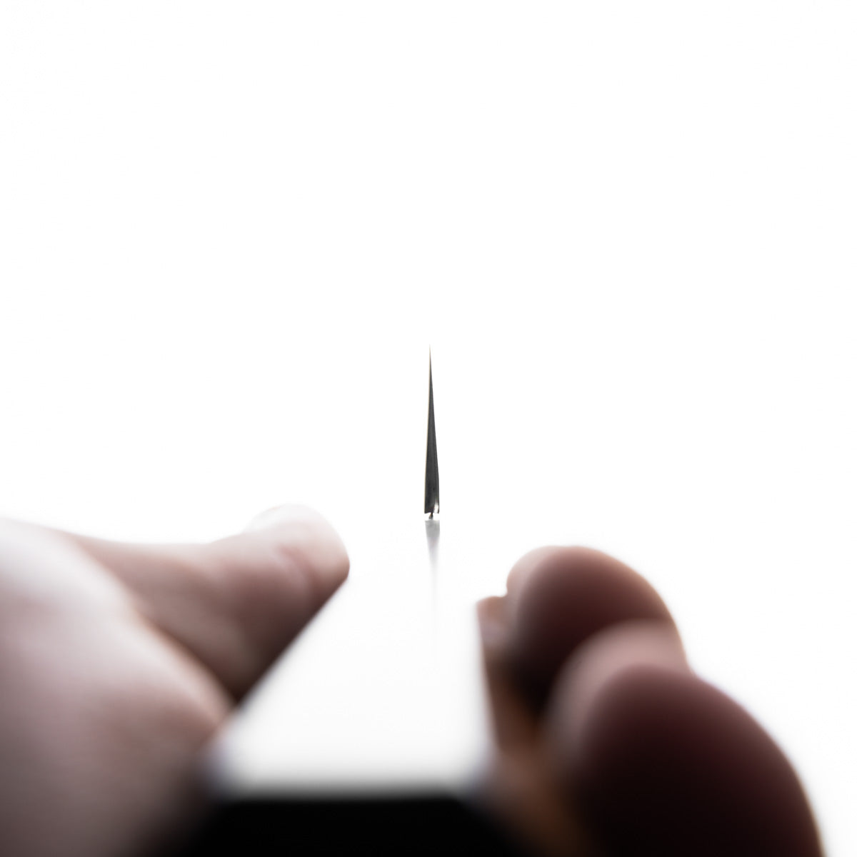 This knife is made from a high-carbon steel and as such, will require a little more care than a regular off-the-shelf knife. It must be dried shortly after use, as prolonged exposure to moisture can cause rust spots to appear. A very light coat of oil during storage also helps to prevent rust spots. A patina (colouration and seasoning of the steel) will occur with use.