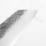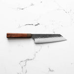 The Bunka knife, a versatile and traditional Japanese kitchen tool, features a distinctive, angular tip and a wide blade. It's designed for precision tasks like slicing, dicing, and chopping. Ideal for handling vegetables, meat, and fish, the Bunka is a multifunctional knife celebrated for its utility and unique aesthetic.