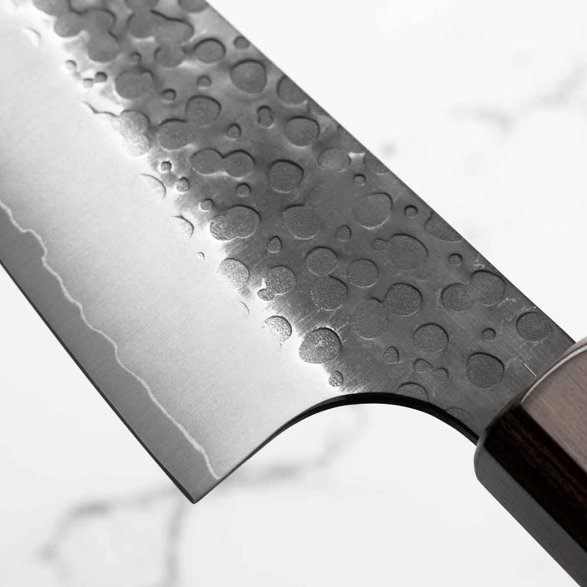 Japanese Ginsan steel, also known as Silver-3 or G3, is an underrated high-grade semi-stainless steel loved by many for being in the ‘goldilocks zone’ of knife steels. It holds a very respectable edge, but is effortless to sharpen. It is considered the semi-stainless version of White 2. It is the knife steel of choice for many home cooks and professional chefs alike.