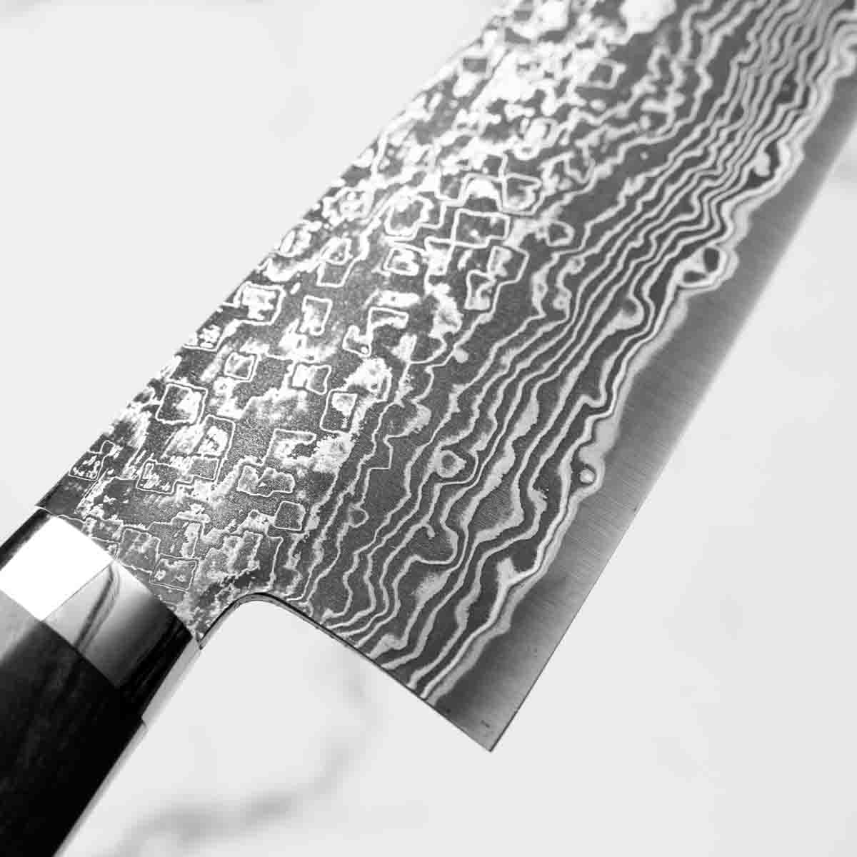 Japanese SG2, also known as R2 steel, is a high-end, powdered metallurgy stainless steel and one of the finest knife-making steels available in Japan. It is a favourite of many for its exceptional hardness and edge retention. Its fine, uniform grain structure enables razor-sharp edges, all the while holding an edge for much longer than Carbon steel knives, without needing to be concerned about rust appearing.