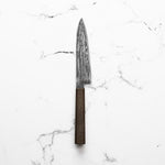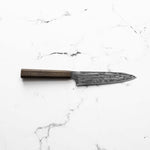 The Petty knife, a quintessential tool in Japanese cuisine, is a smaller utility knife used for precise, delicate tasks. Often considered a smaller sibling to the chef's knife, it excels in hand-held tasks like peeling, trimming, and intricate cutting. Its versatility makes it an essential for detailed culinary work.