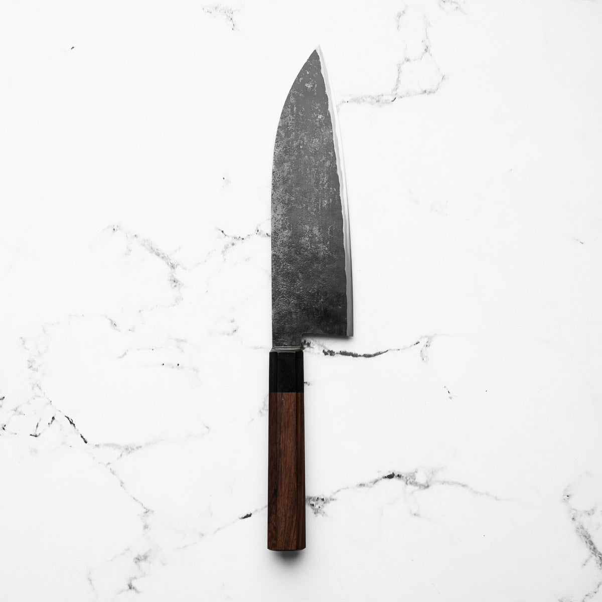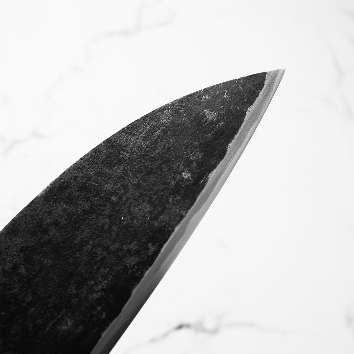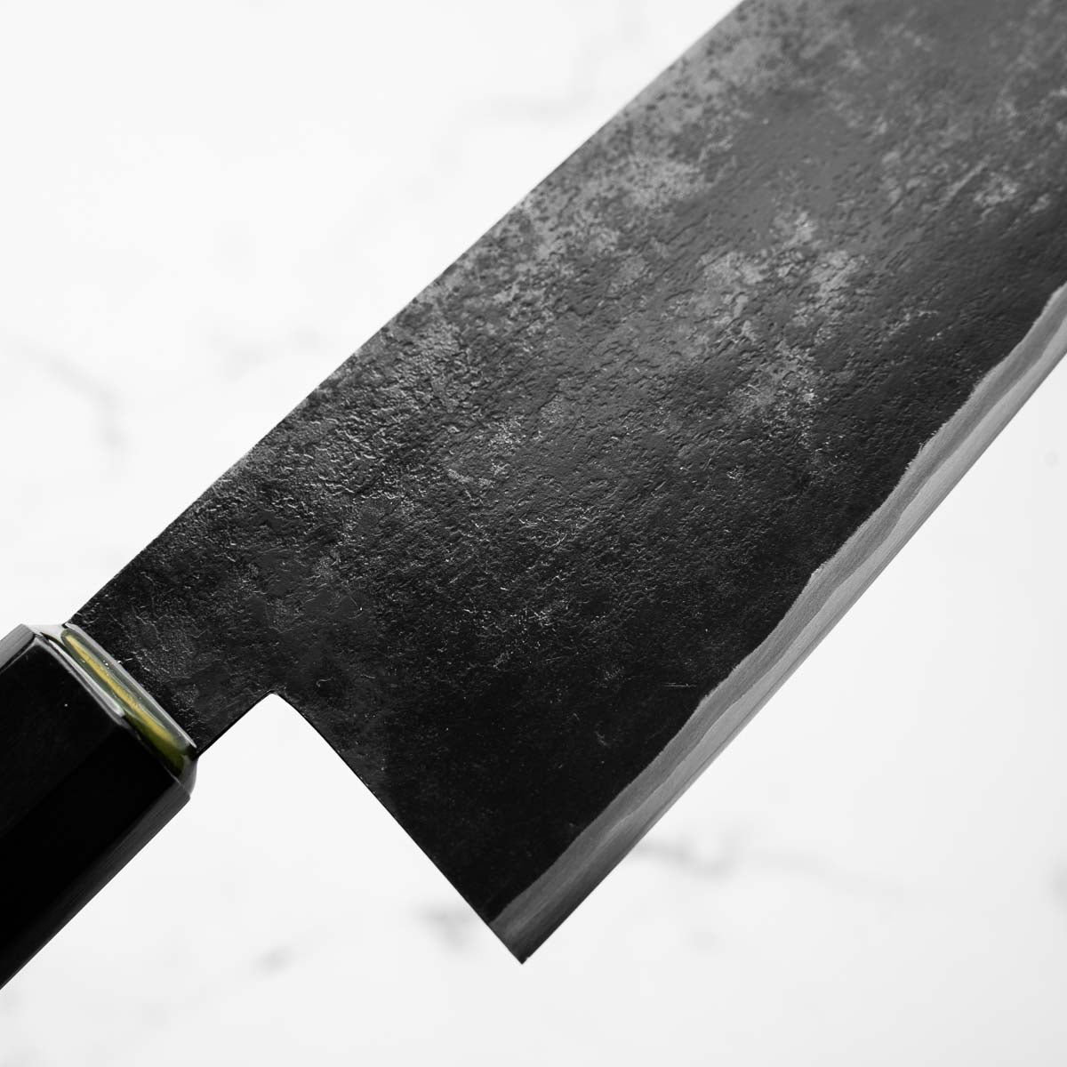 Takeda’s knives are instantly recognizable — tall, kurouchi-finished blades, incredibly lightweight, and ground to an ultra-low bevel that delivers outstanding cutting performance. Often forged from Aogami Super Steel (NAS), these knives are known for holding a razor-sharp edge while being remarkably easy to maintain.