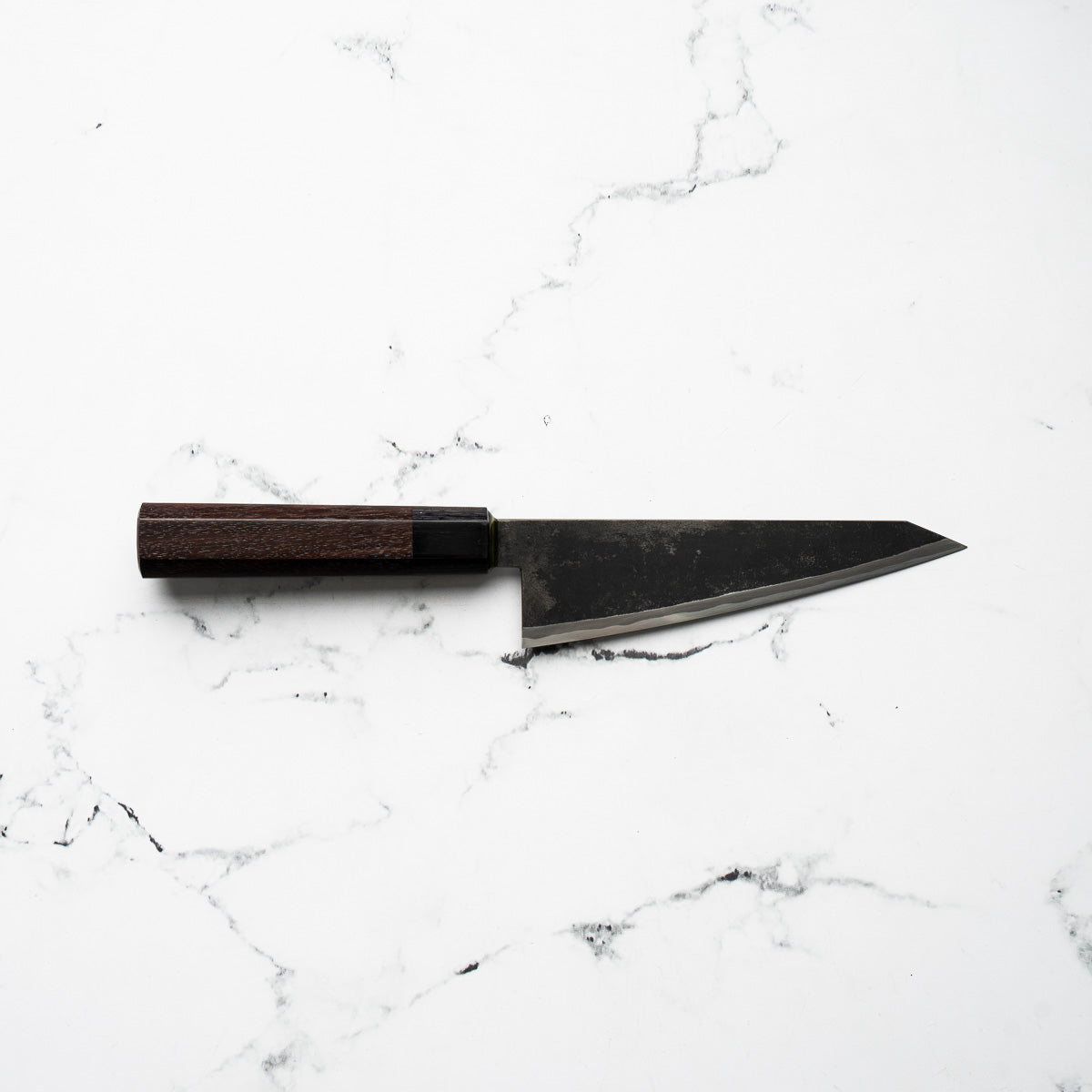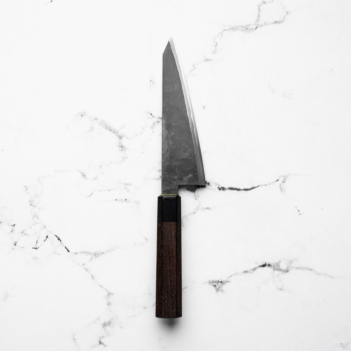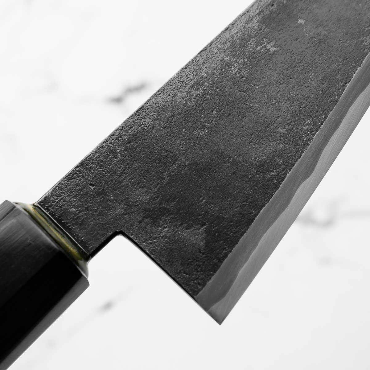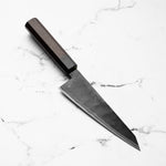Takeda’s knives are instantly recognizable — tall, kurouchi-finished blades, incredibly lightweight, and ground to an ultra-low bevel that delivers outstanding cutting performance. Often forged from Aogami Super Steel (NAS), these knives are known for holding a razor-sharp edge while being remarkably easy to maintain.
