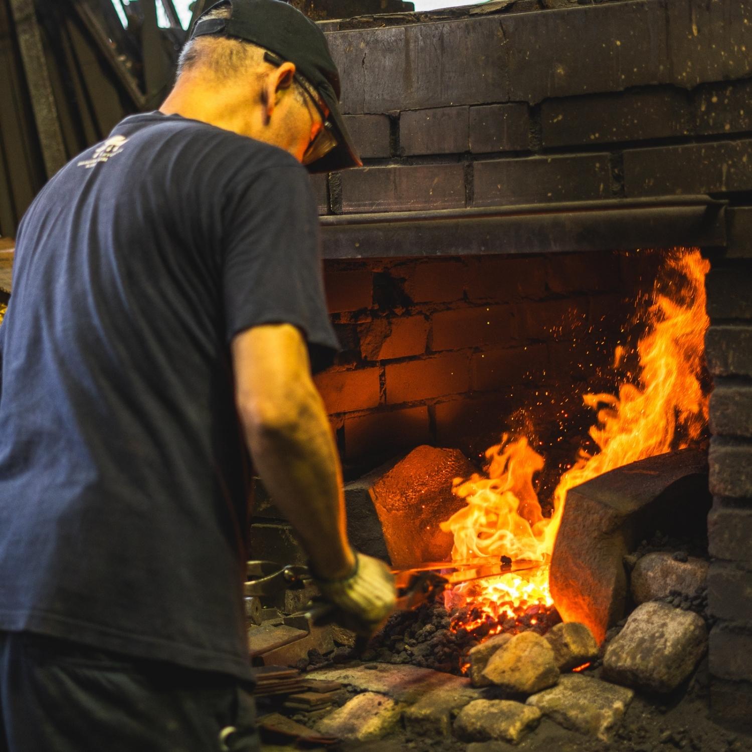 From his forge in the heart of Takefu Knife Village, Takeshi Saji continues to produce some of the most visually striking and technically masterful knives in Japan. Now in his seventies, Saji-san remains one of the most dynamic and prolific blacksmiths working today — blending traditional forging techniques with bold, contemporary design.