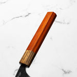 The Sujihiki knife, a traditional Japanese slicer, is designed for carving and fileting. With its long, narrow blade, typically ranging from 240mm to 330mm, it excels in creating clean, smooth cuts through meat and fish. Its length ensures long, uninterrupted strokes, making it perfect for precise slicing tasks.