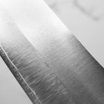 His knives are instantly recognizable for their striking Tsuchime and Suminagashi finishes, thin grinds, and use of high-performance steels such as SG2, HAP40, and stainless-clad Blue Super. Kurosaki’s Fujin series, with its dramatic wind-patterned hammer finish, helped cement his reputation as a blacksmith who blends artistry and technical brilliance in equal measure.