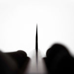 His knives are instantly recognizable for their striking Tsuchime and Suminagashi finishes, thin grinds, and use of high-performance steels such as SG2, HAP40, and stainless-clad Blue Super. Kurosaki’s Fujin series, with its dramatic wind-patterned hammer finish, helped cement his reputation as a blacksmith who blends artistry and technical brilliance in equal measure.