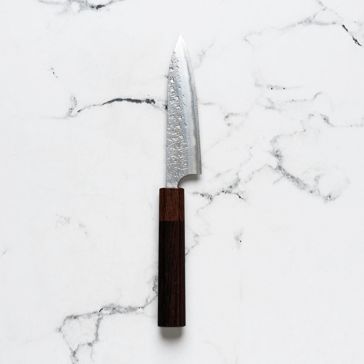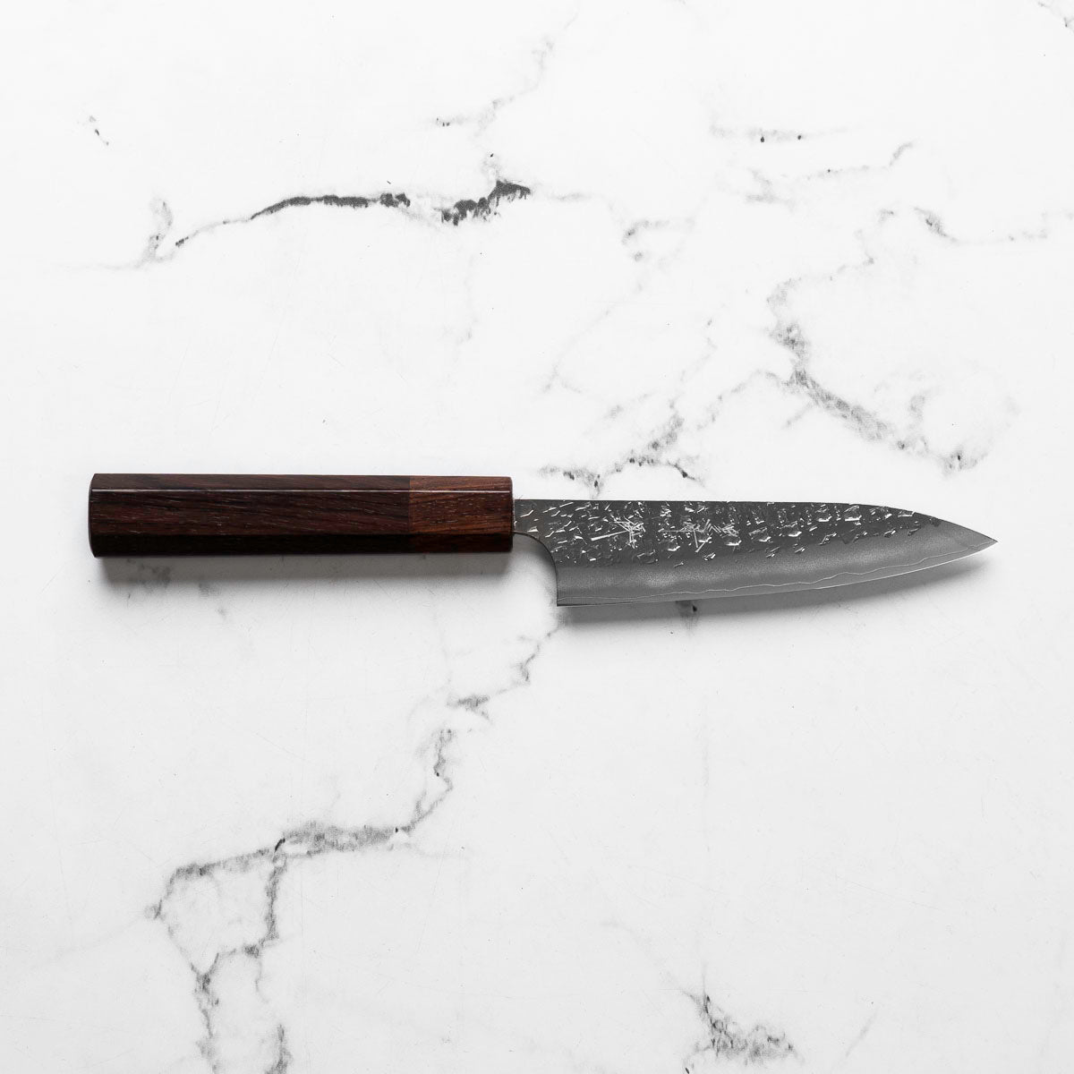 The Petty knife, a quintessential tool in Japanese cuisine, is a smaller utility knife used for precise, delicate tasks. Often considered a smaller sibling to the chef's knife, it excels in hand-held tasks like peeling, trimming, and intricate cutting. Its versatility makes it an essential for detailed culinary work.